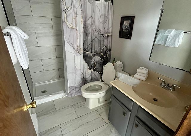 combination tub/shower, queen, shower, sleep sofa /futon, toilet, tub, twin/ single, Coffee Maker, Dishes & Utensils, Dishwasher, Kitchen, Microwave, Oven, Refrigerator, Stove, Toaster, Dining Table, Kitchen Island, Dishes & Utensils for Kids